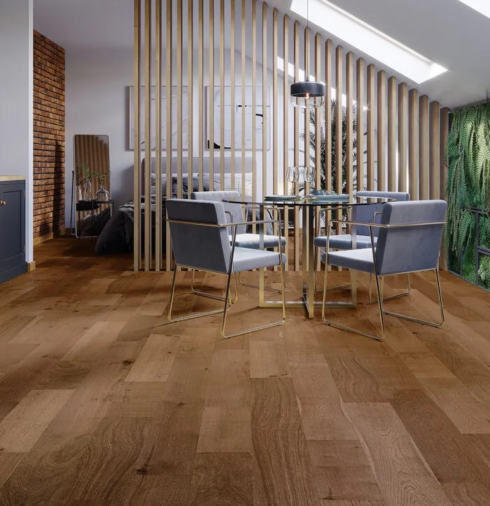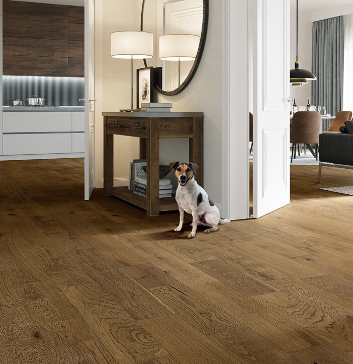 PODŁOGI HYBRYDOWE to kolekcja, w której warstwa użytkowa jest wykonana z pozyskanego prawdziwego drewna, a rdzeń jest z mineralnego kompozytu. Dzięki temu panele są trwałe, wytrzymałe, charakteryzują się wodoodpornością w zakresie krótkotrwałego oddziaływania wody, a jednocześnie w użytkowaniu mamy kontakt z naturalnym drewnem. Tak, jak drewno z którego wykonano warstwę użytkową, każdy panel jest inny w wyglądzie i to jest właśnie sama natura. Więcej informacji, w tym instrukcje, na stronie producenta.
