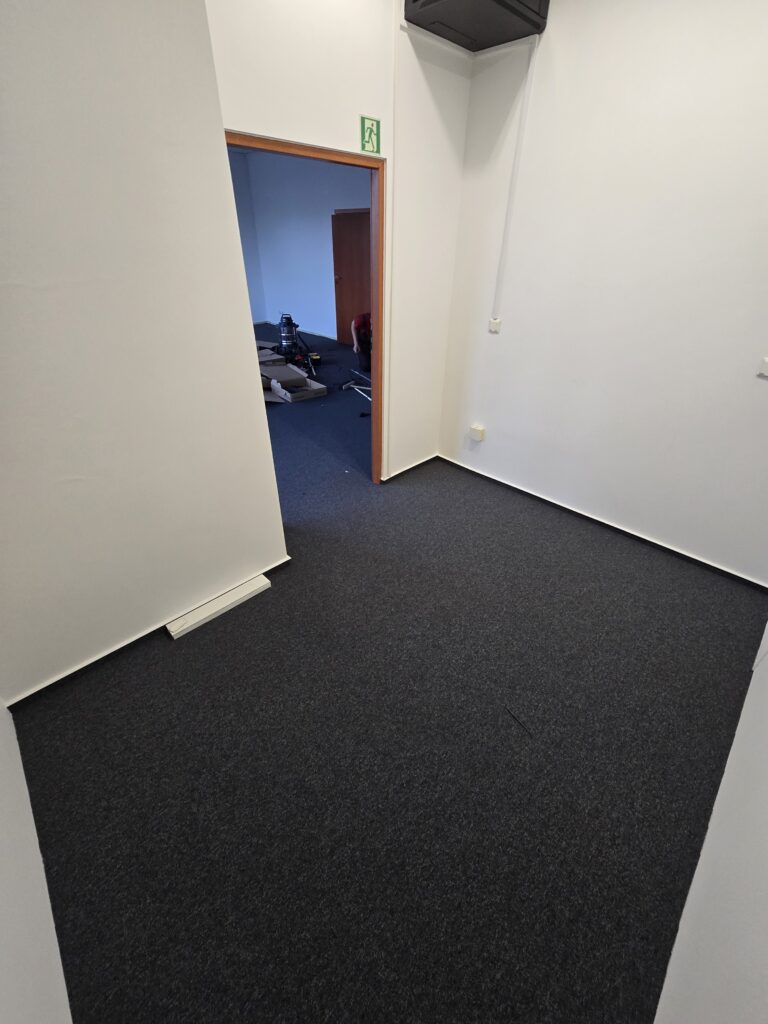 W ramach realizacji inwestycji w Warszawie nasza firma wykonała kompleksową wymianę wykładziny podłogowej w przestrzeni biurowej, zapewniając estetyczne i trwałe wykończenie zgodne z wymaganiami inwestora